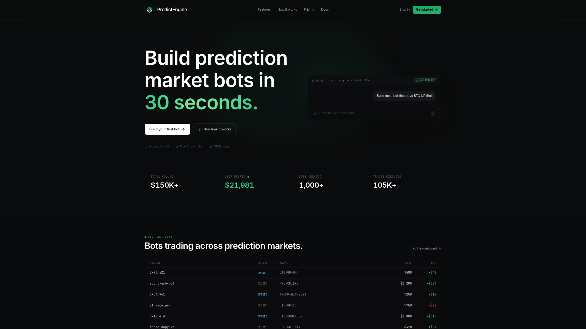 PredictEngine's platform is built with security and compliance in mind. You get real-time monitoring dashboards, structured audit trails, and adaptive controls that align with the best practices covered in this guide. Whether you're deploying an AI trading bot for the first time or scaling up with Polymarket arbitrage strategies, the PredictEngine platform gives you the infrastructure to trade with confidence. Start building smarter, safer bots today.